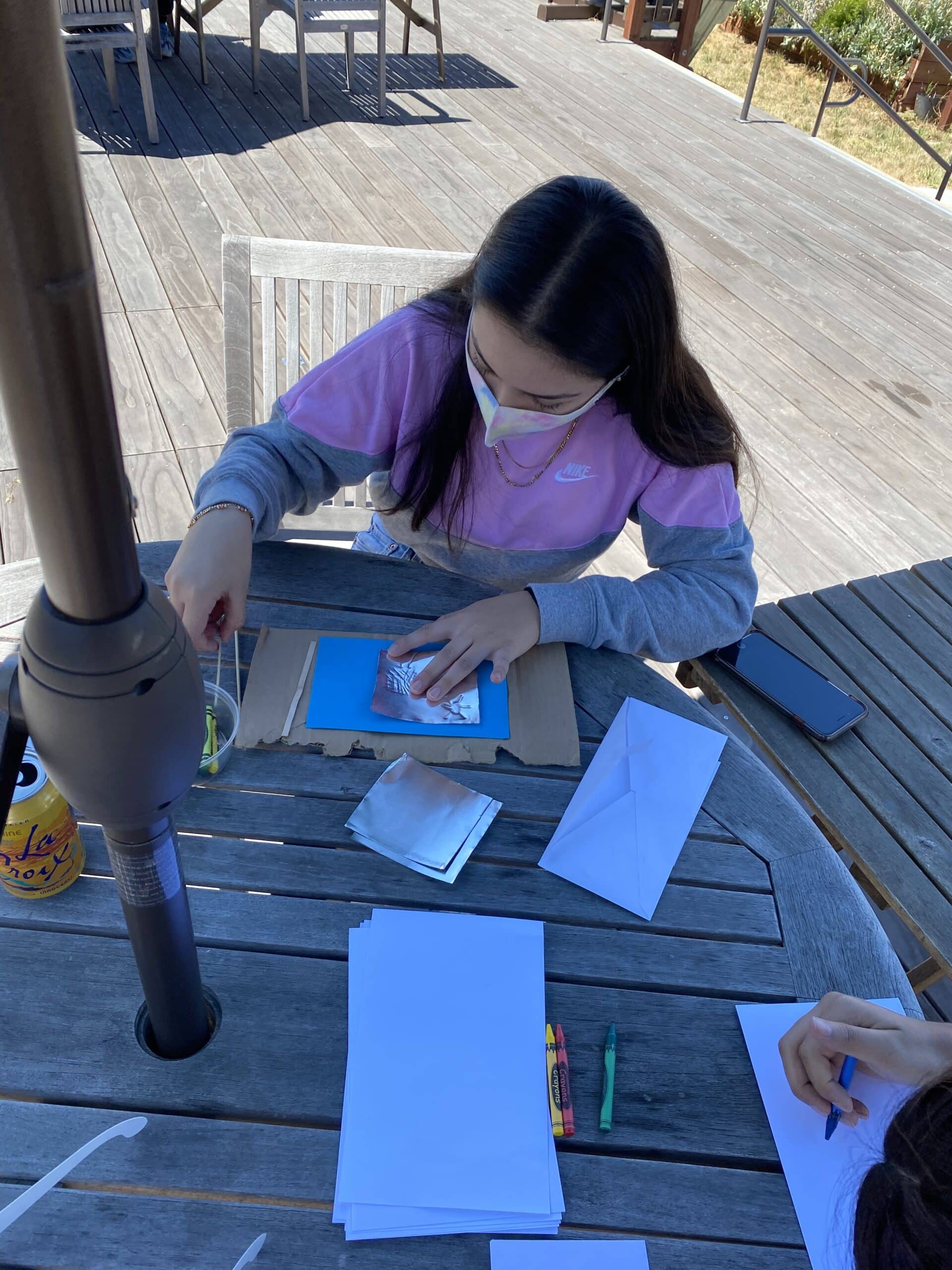 To get the kits ready for delivery, students came together, masked, outdoors, and physically distanced to package and prepare the materials.